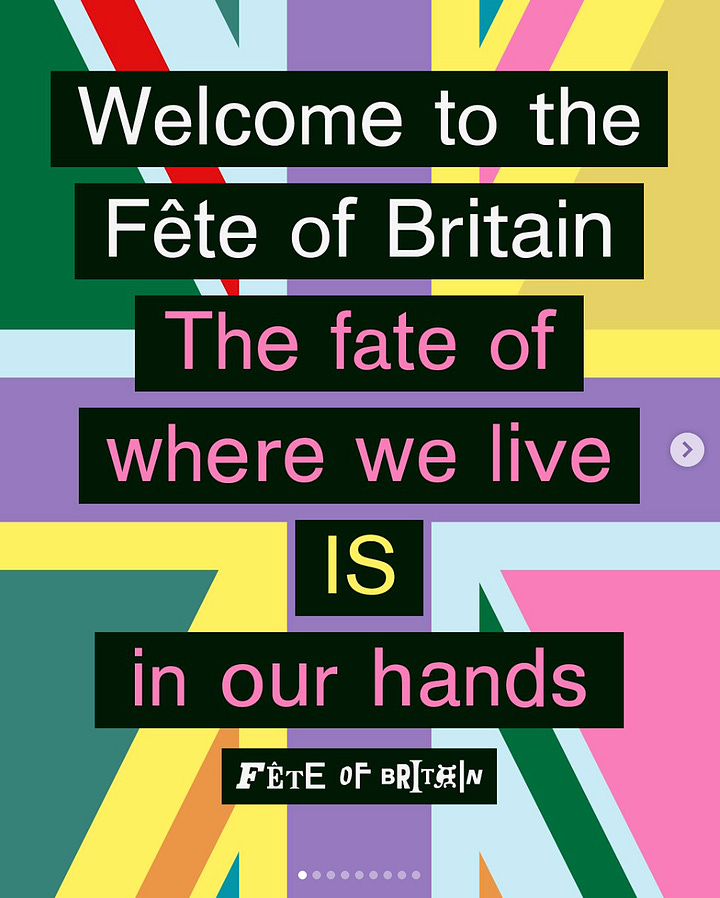 In the meantime, we now have a person working on the social channels of the Fete of Britain, a never-ending festival bringing us together to show that we can — and will — collectively make a better place to live. More here and here.